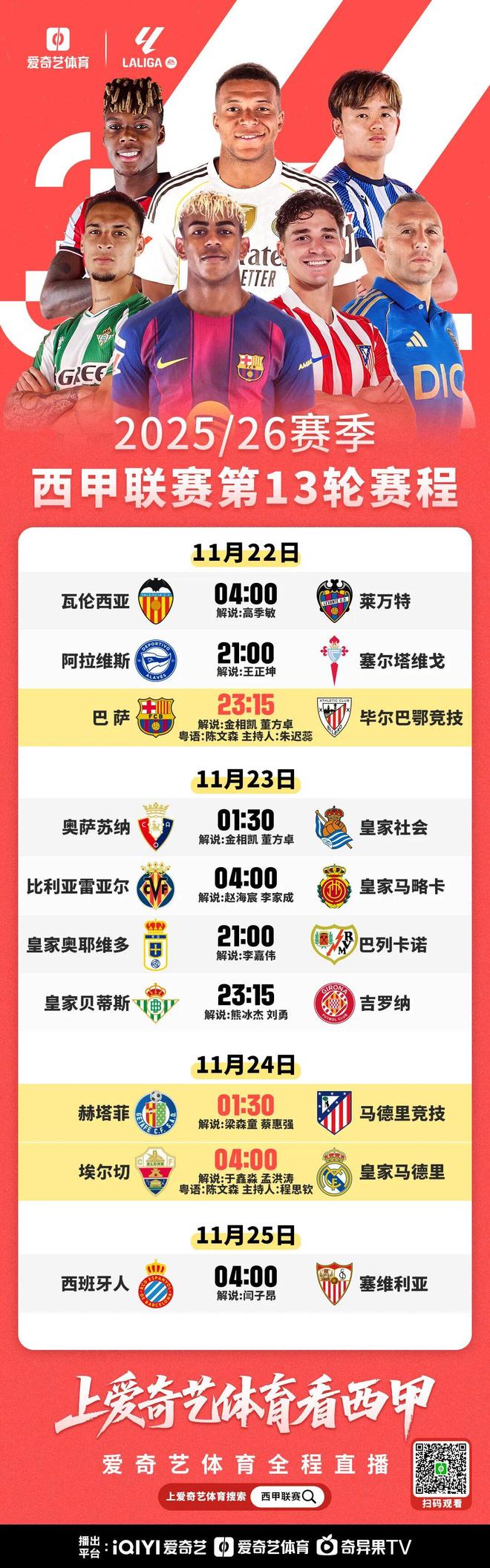 巴塞罗那vs毕尔巴鄂竞技 11月22日(周六)23:15本周六晚,随着国际比赛日结束,西甲即将重燃战火。巴萨将回归诺坎普对阵毕尔巴鄂竞技。这是诺坎普因翻修工程暂停主场使用两年半后,巴萨首次重返这座标志性球场作战。本场比赛,爱奇艺体育将全程直播。2022年4月,巴萨官方宣布诺坎普将于6月进行改造。2023年5月28日,巴萨主场3-0击败马洛卡,这是他们在球场翻新前在诺坎普进行的最后一场比赛。本周六,巴塞罗那足球俱乐部将在全新的诺坎普球场迎来首场比赛。为了纪念球队历史上这一重要时刻,在对阵毕巴的比赛中巴萨球员将身穿一件特别版球衣。这件球衣胸前将带有特殊徽章,位于队徽与耐克标志之间,上面印有“Tornem a casa”(我们回家了)的字样。国际比赛日后,弗里克迎来利好。巴萨队内不仅没有任何球员受伤,还迎回了几名伤员。已经因伤缺阵近两个月的拉菲尼亚已重新随队合练,他有望在本周六迎来复出。此外,新门神霍安-加西亚也有望在诺坎普正式复出。在他缺阵的比赛中,巴萨尚未实现过零封。至于亚马尔的情况,虽然他已经参加了球队的部分合练,但能否获得出场机会仍需接受评估。上赛季,巴萨在西甲和国王杯赛场上曾三杀巴斯克雄狮。他们一共打进7球近丢1球。此番交手,红蓝军团能否轻松取胜?