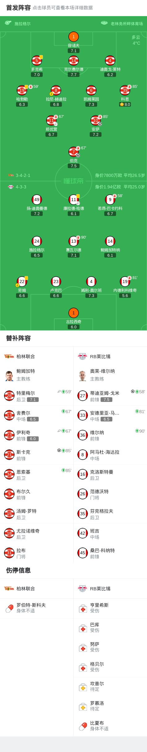 柏林联合31RB莱比锡,斯卡克、安萨破门