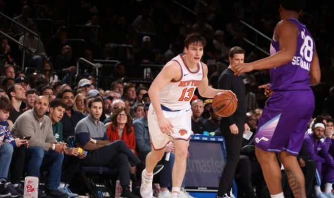 作为2024年次轮第4顺位被选中的科莱克,进入联盟的时候都已经23岁,不过作为一名身高只有1米88的白人后卫,人们对于他根本没抱有太多期待,毕竟次轮选秀中能得到像布伦森这样的球员,可不是每年都会出现。所以在开拓者队选中科莱克的时候,甚至他还没有打一场比赛,就被交易至了尼克斯队。当时的尼克斯队,因为组建了强大的首发阵容,让球队的替补阵容非常孱弱,球队想要科莱克成为布伦森的替补,在衔接段帮助球队梳理进攻,毕竟在大学时,科莱克就是以球风稳健,传球视野出色而文明。