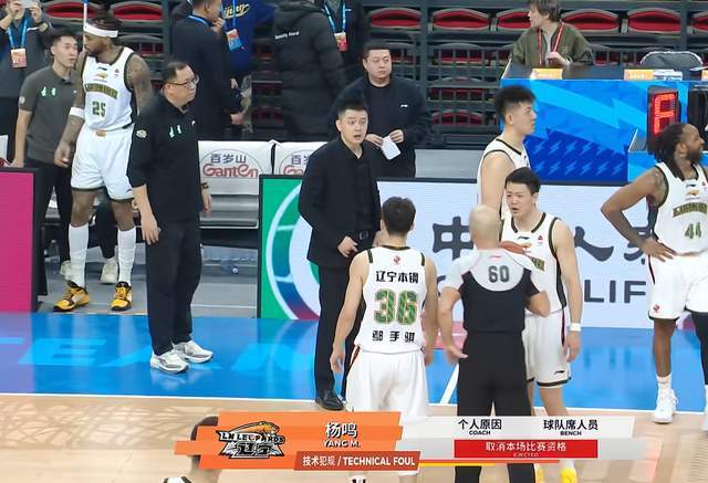 我们先来看看,杨鸣的2个T都是咋来的吧,看看到底冤不冤。比赛进行到第4节,辽宁男篮新援姜宇星拼抢篮板时,手肘碰到陈盈骏面部,裁判给了犯规,杨鸣情绪激动,冲裁判抱怨,因此吃到技术犯规。第2个T就很诡异了,直播角度给的不清楚,但是,看裁判的反应,有可能是杨鸣碰到了他,接触了裁判身体,所以吹了技术犯规。当然,杨鸣一直不依不饶地在裁判身后抱怨,吹了也不冤枉。杨鸣离场前先是返回替补席拿了瓶水润喉,然后又与辽篮队员挨个击掌,做完这一系列动作后才无奈退场。当然,在退场时,他依旧冲着技术台喋喋不休,仍旧不服气的感觉。