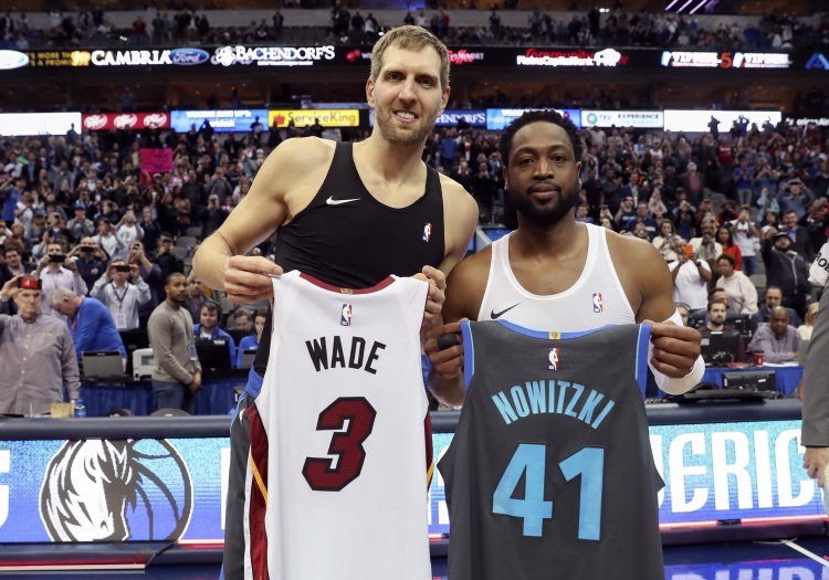 韦德说道:“对于我和德克来说,这(共同进入名人堂)是一种治愈。谁能想到,在经历了这么多的战斗后,我们会在同一支队伍(2023届名人堂),但目前这支队伍是我们效力过的最伟大的队伍之一。”