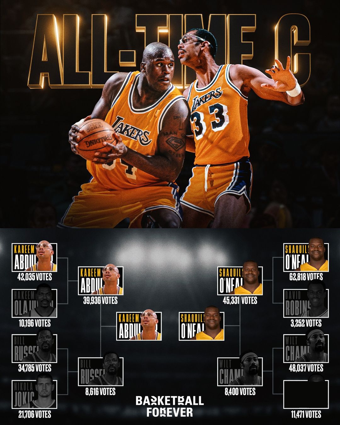 决赛对阵出炉:贾巴尔VS奥尼尔!
