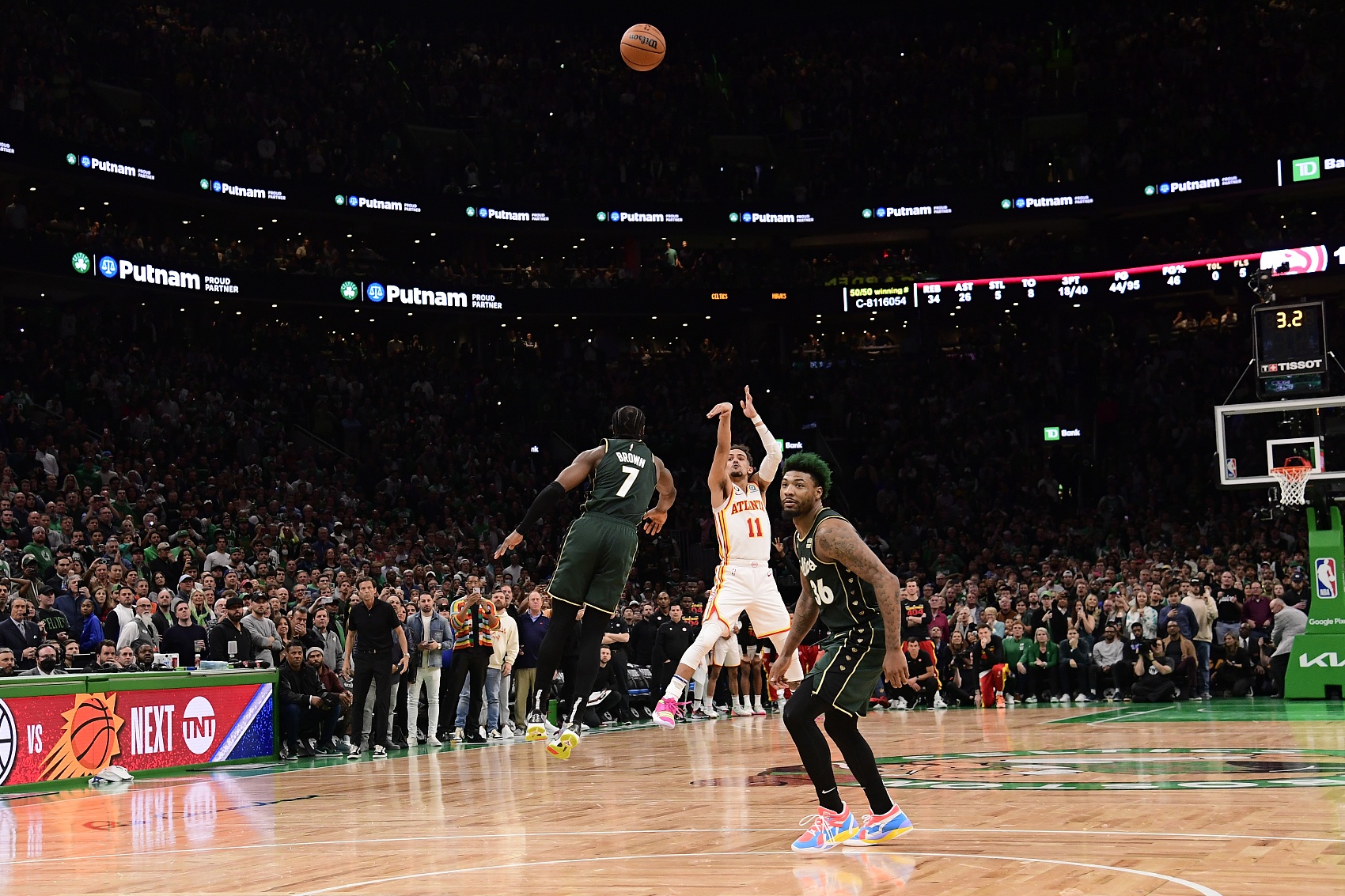 2022-23赛季,特雷-杨出战73场常规赛,场均26.2分3篮板10.2助攻1.1抢断,投篮命中率42.9%,三分命中率33.5%;6场季后赛,场均29.2分3.7篮板10.2助攻1.7抢断,投篮命中率40.3%,三分命中率33.3%。